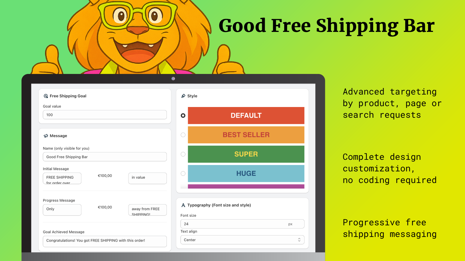 Motivate customers with personalized free shipping messages, encourage larger carts, and grow your sales